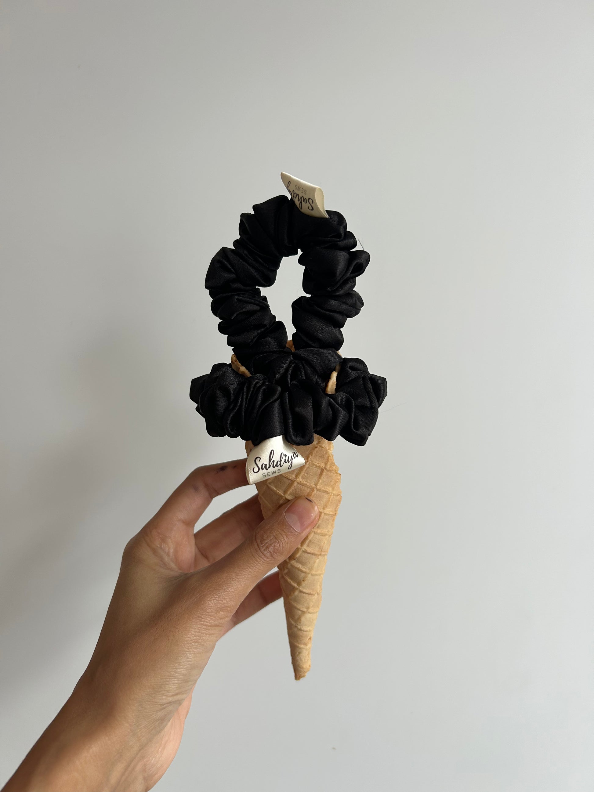 Add a timeless yet cosy touch to your autumn/winter hairstyles with this handmade scrunchie! Made from black satin, it has a soft, silky sheen that feels luxurious against your hair while adding just the right amount of elegance to your look.